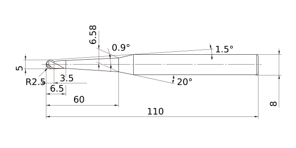 (Ball noze, Medium cut length, 3 flute, Taper neck)