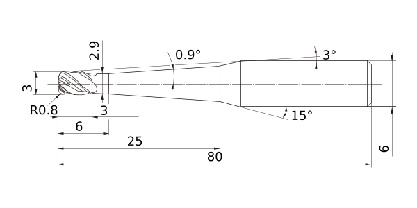 Solid End Mills >VFHVRB_TAPER_NECK >VFHVRBD030R08N025T09