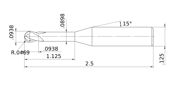 (Ball nose end mill, Short cut length, 2 flute, Long neck)