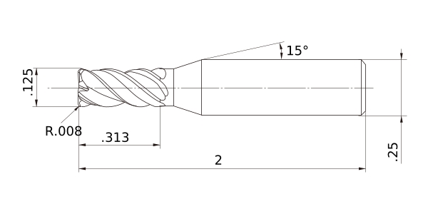 Solid End Mills >VQMHVRB_INCH >VQMHVRBD1/8R008