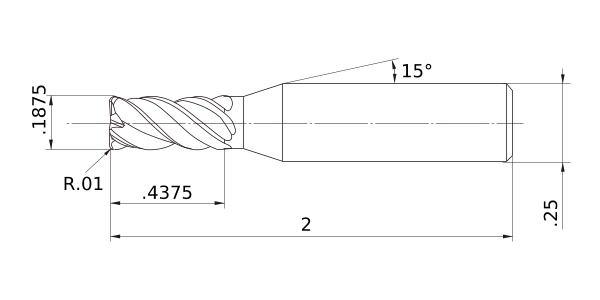 | Min. Cutting EdgeDiameter Tolerance | -.0008 |