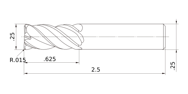Solid End Mills >VQMHVRB_INCH >VQMHVRBD1/4R015