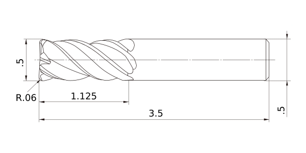 Solid End Mills >VQMHVRB_INCH >VQMHVRBD1/2R060