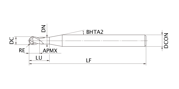 (Ball nose, Short cut length, 2 flute, For hardened materials)