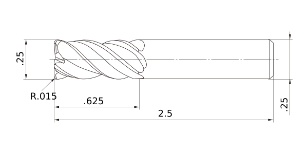 Solid End Mills >VQMHVRBF_INCH >VQMHVRBFD1/4R015