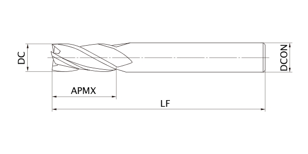(End mill, Semi long cut length, 4 flute)