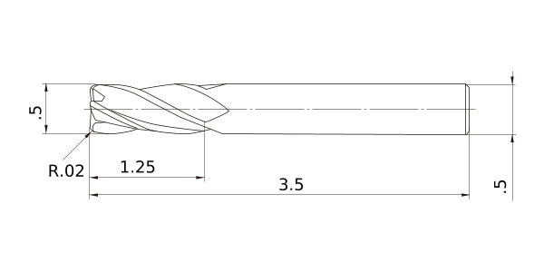 Solid End Mills >MP4MRB_INCH >MP4MRBD1/2R020