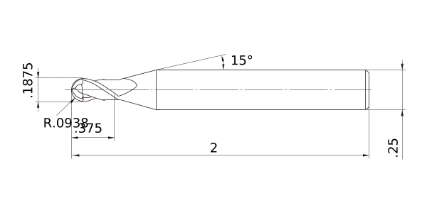 Solid End Mills >MP2MB_INCH >MP2MBD3/16