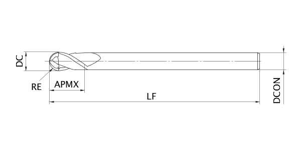 (Ball nose, Medium cut length, 2 flute)