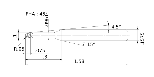 (Ball nose, Short cut length, 4 flute, Long neck)