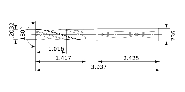 | Tolerancia mín. de diámetro de filo de corte | -.0007 |