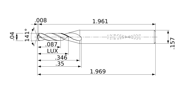 | Tolerancia máx. de diámetro de filo de corte | .0002 |