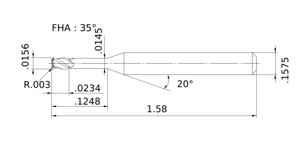 | Tolerancia mín. de diámetro de filo de corte | -.0008 |